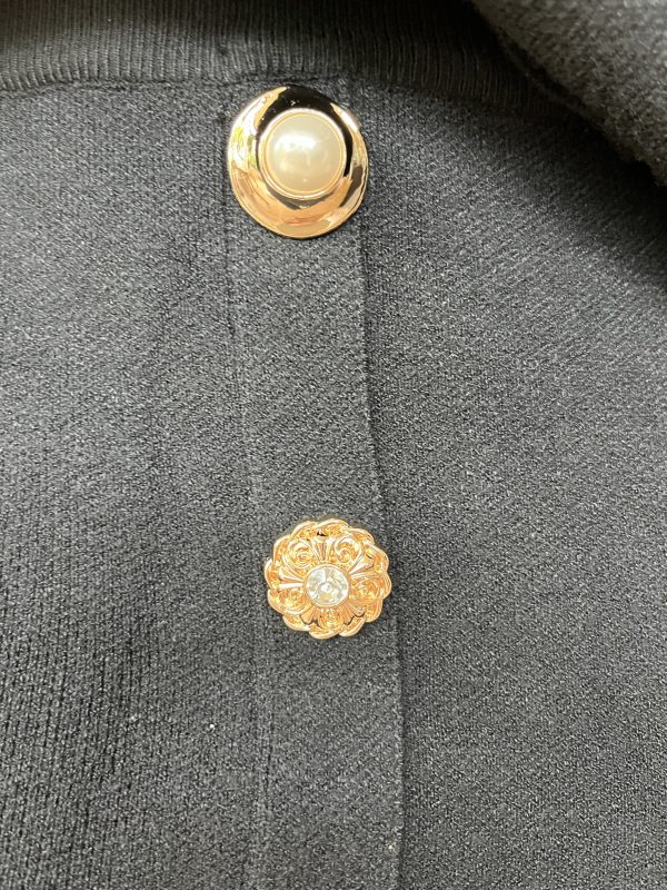• Rok in de kleur zwart met verschillende gouden knopen met parels.
